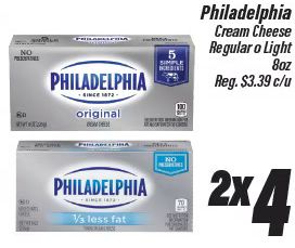 philadelphia original simple cream cheese regular light $c/u less