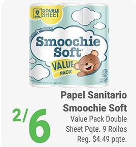 double sheet smoochie soft value pack papel sanitario pqte rollos reg. $pqte.