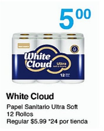white cloud ultra papel sanitario soft rollos regular $*por tienda
