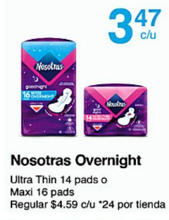 goodnight oven overnight ultra thin pads maxi regular $c/u *por tienda