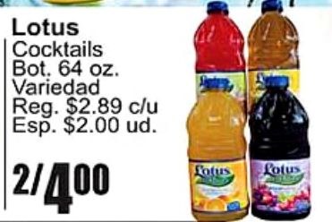 lotus cocktails variedad reg. $c/u esp. $ud. /lotus