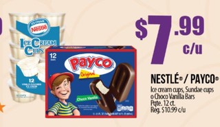 NESTLÉ®/PAYCO Ice cream cups, Sundae cups o Choco Vanilla Bars Pqte. 12 ct.