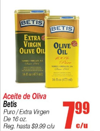 Aceite de Oliva Betis Puro/ Extra Virgen De 16 oz.