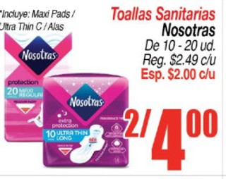 Toallas Sanitarias Nosotras De 10-20 ud.