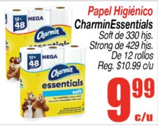 Papel Higiénico CharminEssentials Soft de 330 hjs. Strong de 429 hjs. De 12 rollos.