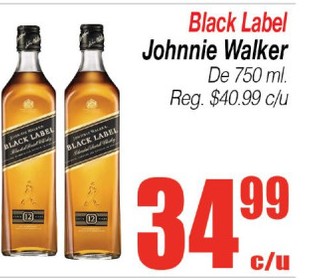 Black Label Johnnie Walker De 750 ml. Reg. $40.99 c/u
