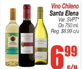 Vino Chileno Santa Elena Var. SVPT* De 750 ml. Reg. $8.99 c/u