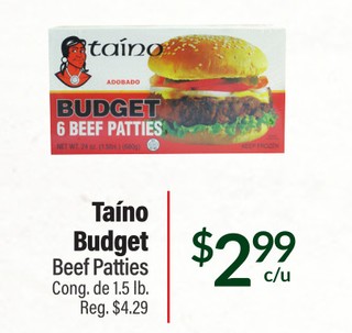 TaÃno Budget Beef Patties Cong. de 1.5 lb.
