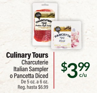 Culinary Tours Charcuterie Italian Sampler o Pancetta Diced De 5 oz. a 6 oz.