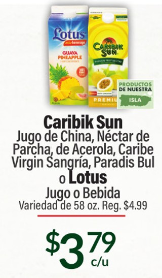 Caribik Sun Jugo de China, Néctar de Parcha, de Acerola, Caribe Virgin SangrÃa, Paradis Bul o Lotus Jugo o Bebida Variedad de 58 oz. Reg. $4.99