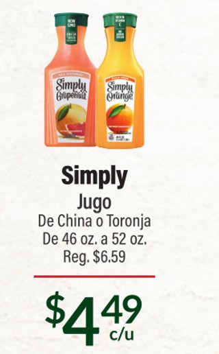 Simply jugo de china o toronja de 46 oz. a 52 oz.