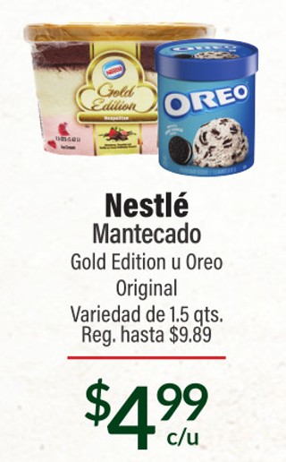 Nestlé Mantecado Gold Edition u Oreo Original Variedad de 1.5 qts. Reg. hasta $9.89