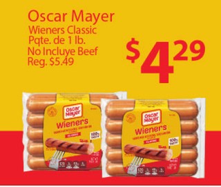 Oscar Mayer Wieners Classic Pqte. de 1 lb. No Incluye Beef.