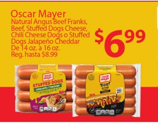 Oscar Mayer Natural Angus Beef Franks, Beef, Stuffed Dogs Cheese, Chili Cheese Dogs o Stuffed Dogs Jalapeño Cheddar De 14 oz. a 16 oz.