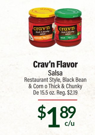 Crav'n Flavor Salsa Restaurant Style, Black Bean & Corn o Thick & Chunky De 15.5 oz.