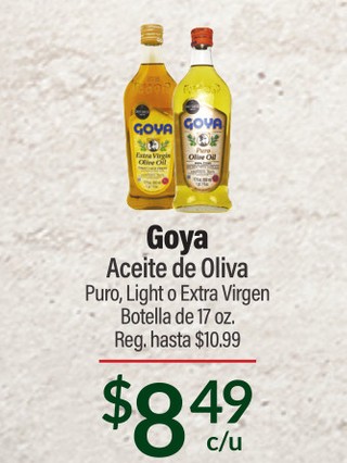 Goya Aceite de Oliva Puro, Light o Extra Virgen Botella de 17 oz.