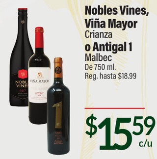 Nobles Vines, Viña Mayor Crianza o Antigal 1 Malbec De 750 ml.