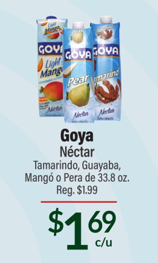 Goya Néctar Tamarindo, Guayaba, Mangó o Pera de 33.8 oz.