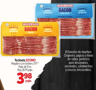 Tocineta ECONO Regular o Low Sodium, Pqte. de 12 oz.