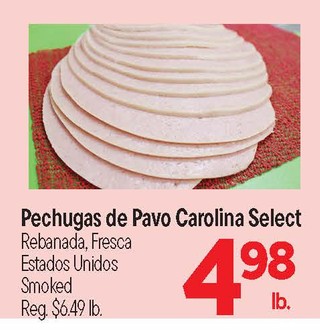 Pechugas de Pavo Carolina Select Rebanada, Fresca Estados Unidos Smoked