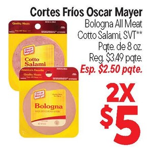 Cortes frios oscar mayer bologna all meat cotto salami, svt ** pqte. de 8 oz.