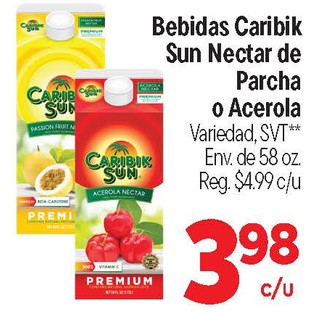 Bebidas Caribik Sun Nectar de Parcha o Acerola Variedad, SVT** Env. de 58 oz.