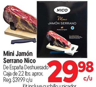 Mini jamon serrano nico de españa deshuesado caja de 2.2 lbs. aprox.