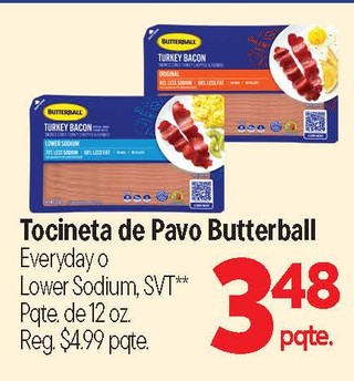 Tocineta de pavo butterball everyday o lower sodium, svt ** pqte. de 12 oz.