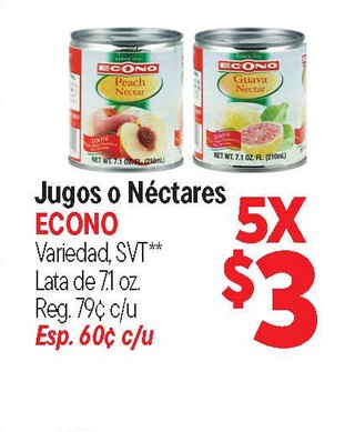Jugos o nectares econo variedad, svt ** lata de 7.1 oz.