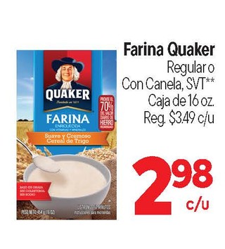 Farina quaker regular o con canela, svt ** caja de 16 oz.