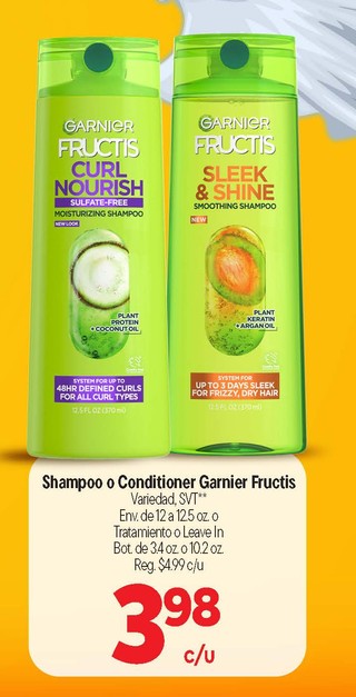 Shampoo o Conditioner Garnier Fructis Variedad, SVT** Env. de 12 a 12.5 oz o Tratamiento o Leave In Bot. de 3.4 oz. o 10.2 oz