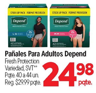 Pañales Para Adultos Depend Fresh Protection Variedad, Pqte. 40 a 44 un.