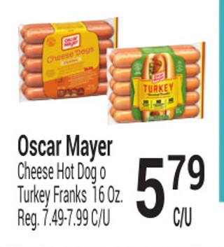 Oscar Mayer Cheese Hot Dog o Turkey Franks 16 Oz.