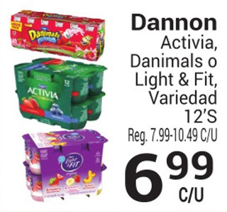 Dannon Activia, Danimals o Light & Fit, Variedad 12's