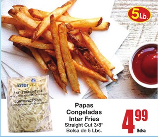 Papas Congeladas Inter Fries Straight Cut 3/8'' Bolsa de5 Lbs.