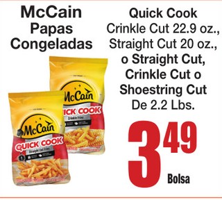 McCain Papas Congeladas Quick Cook Crinkle Cut 22.9 oz., Straight Cut 20 oz., o Straight Cut, Crinkle Cut o Shoestring Cut De 2.2 Lbs.