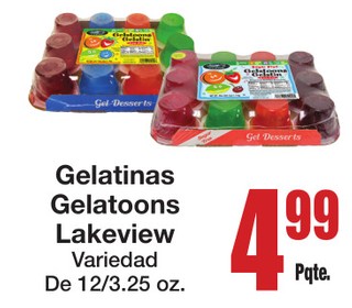 Gelatinas Gelatoons Lakeview Variedad De 12/3.25 oz.