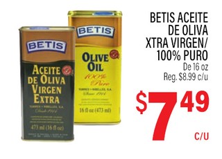 BETIS ACEITE DE OLIVA XTRA VIRGEN/100% PURO De 16 oz.