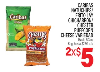 CARIBAS NATUCHIPS/ FRITO LAY CHICHARRON/ CHESTER PUFFCORN CHEESE VARIEDAD Hasta 5.3 oz
