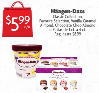 Häagen-Dazs Classic Collection, Favorite Selection, Vanilla Caramel Almond, Chocolate Choc-Almond o Pintas de 1 ct. a 4 ct.