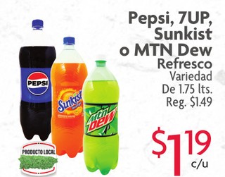 Pepsi, 7UP, Sunkist o MTN Dew Refresco Variedad De 1.75 lts.