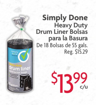 Simply Done Heavy Duty Drum Liner Bolsas para la Basura De 18 Bolsas de 55 gals.