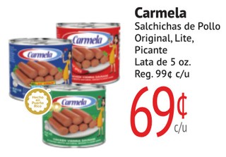 Carmela Salchichas de Pollo Original, Lite, Picante Lata de 5 oz.