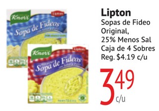 Lipton Sopas de Fideo Original, 25% Menos Sal Caja de 4 Sobres.