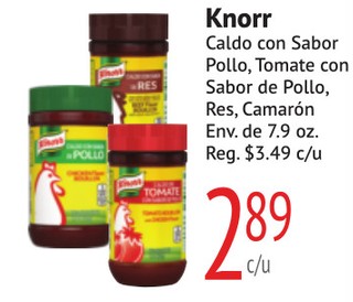 Knorr Caldo con Sabor Pollo, Tomate con Sabor de Pollo, Res, Camaron Env. de 7.9 oz.