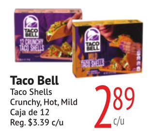 Taco Bell Taco Shells Crunchy, Hot, Mild Caja de 12