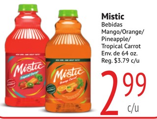 Mistic Bebidas Mango/Orange/ Pineapple/ Tropical Carrot Env. de 64 oz.