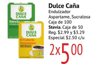 Dulce Caña Endulzador Aspartame, Sucralosa Caja de 100 Stevia. Caja de 50
