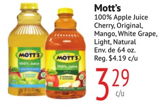 Mott's 100% Apple Juice Cherry, Original, Mango, White Grape, Light, Natural Env. de 64 oz.