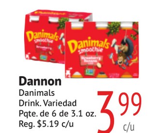 Dannon Danimals Drink. Variedad Pqte. de 6 de 3.1 oz.